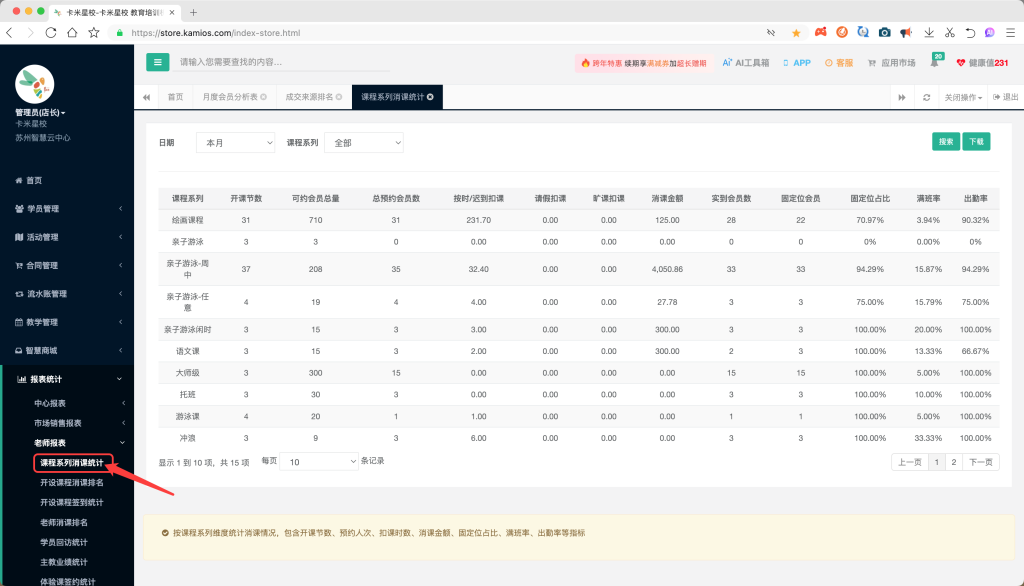 沉默会员是否集中在某些课程系列?结合消课报表中的出勤与满班数据,可针对性优化课程或启动专属唤醒活动。